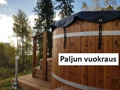 Voit saunan vuokrauksen yhteydessä vuokrata myös valmiiksi lämmitetyn 6-8 hengen paljun 250 € lisähintaan.